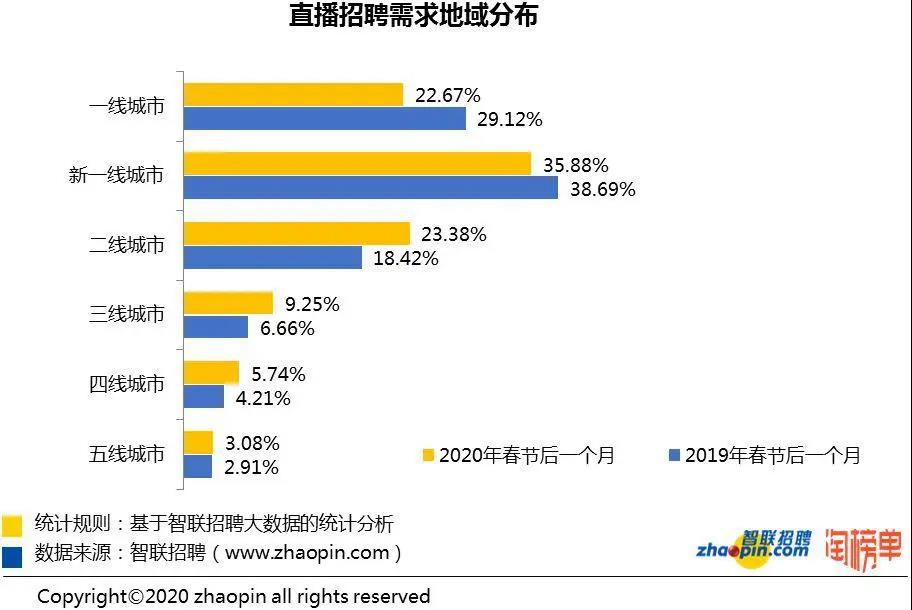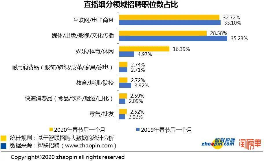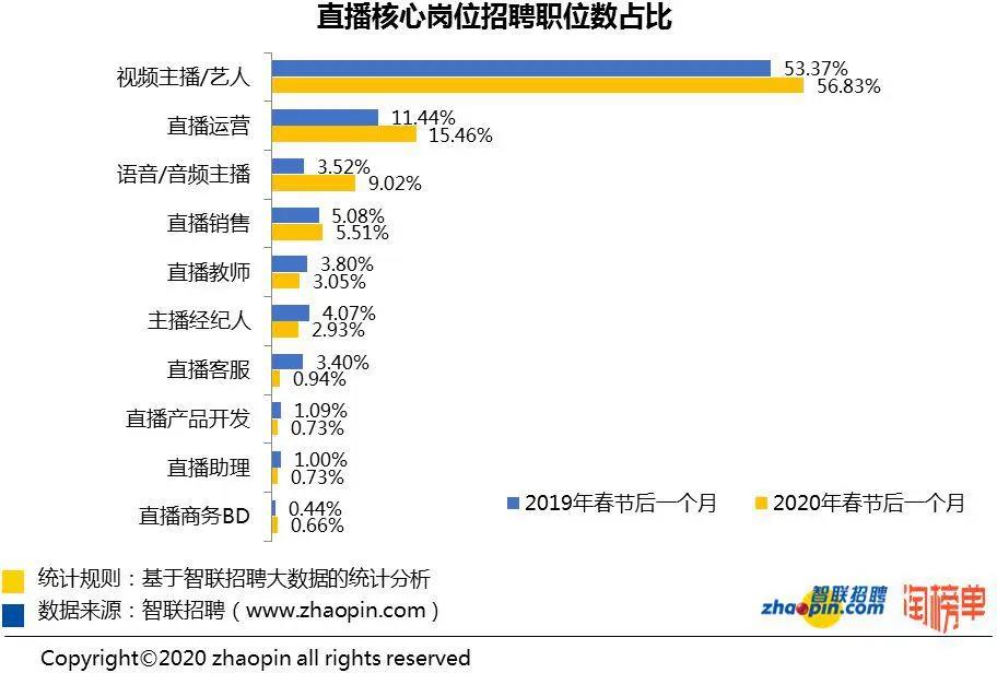 近日,智聯(lián)招聘攜手淘榜單共同發(fā)布的《2020 年春季直播產(chǎn)業(yè)人才報告》顯示,